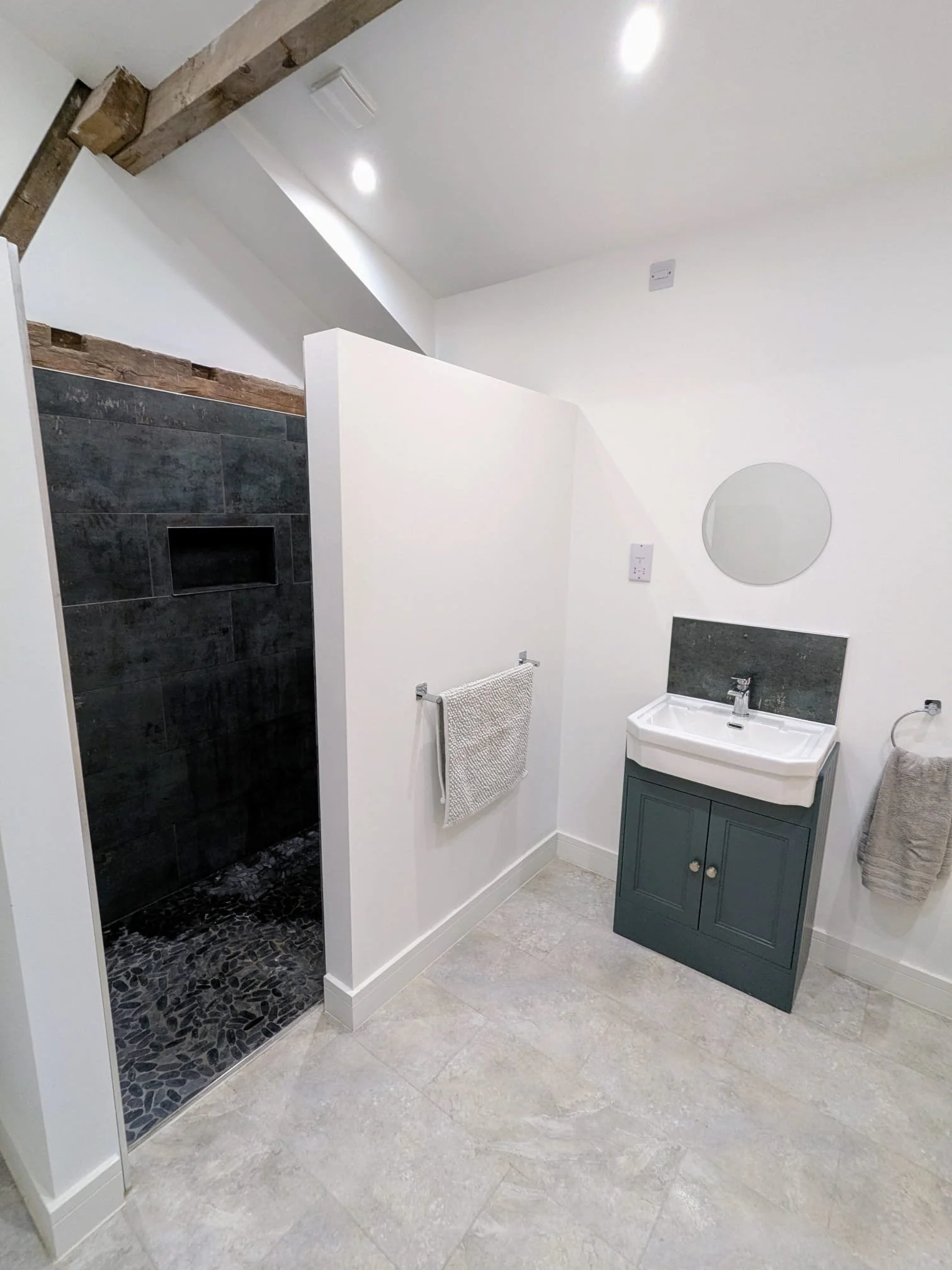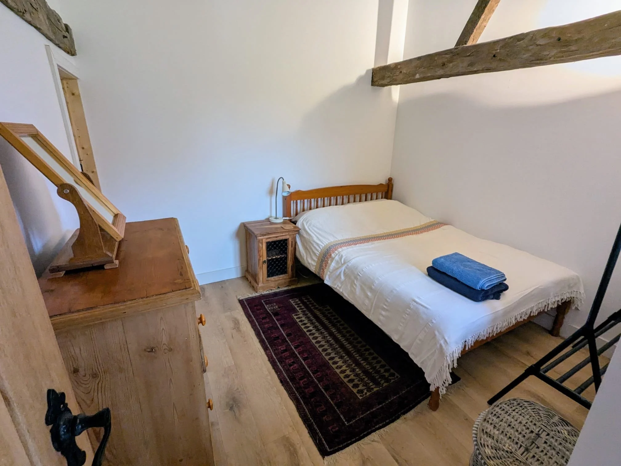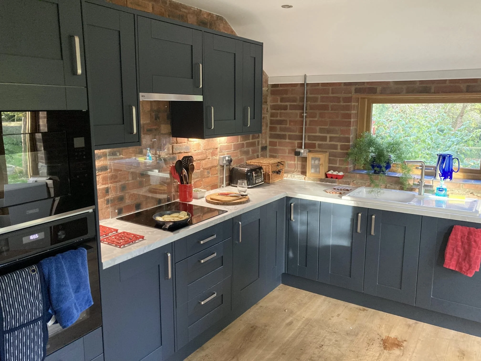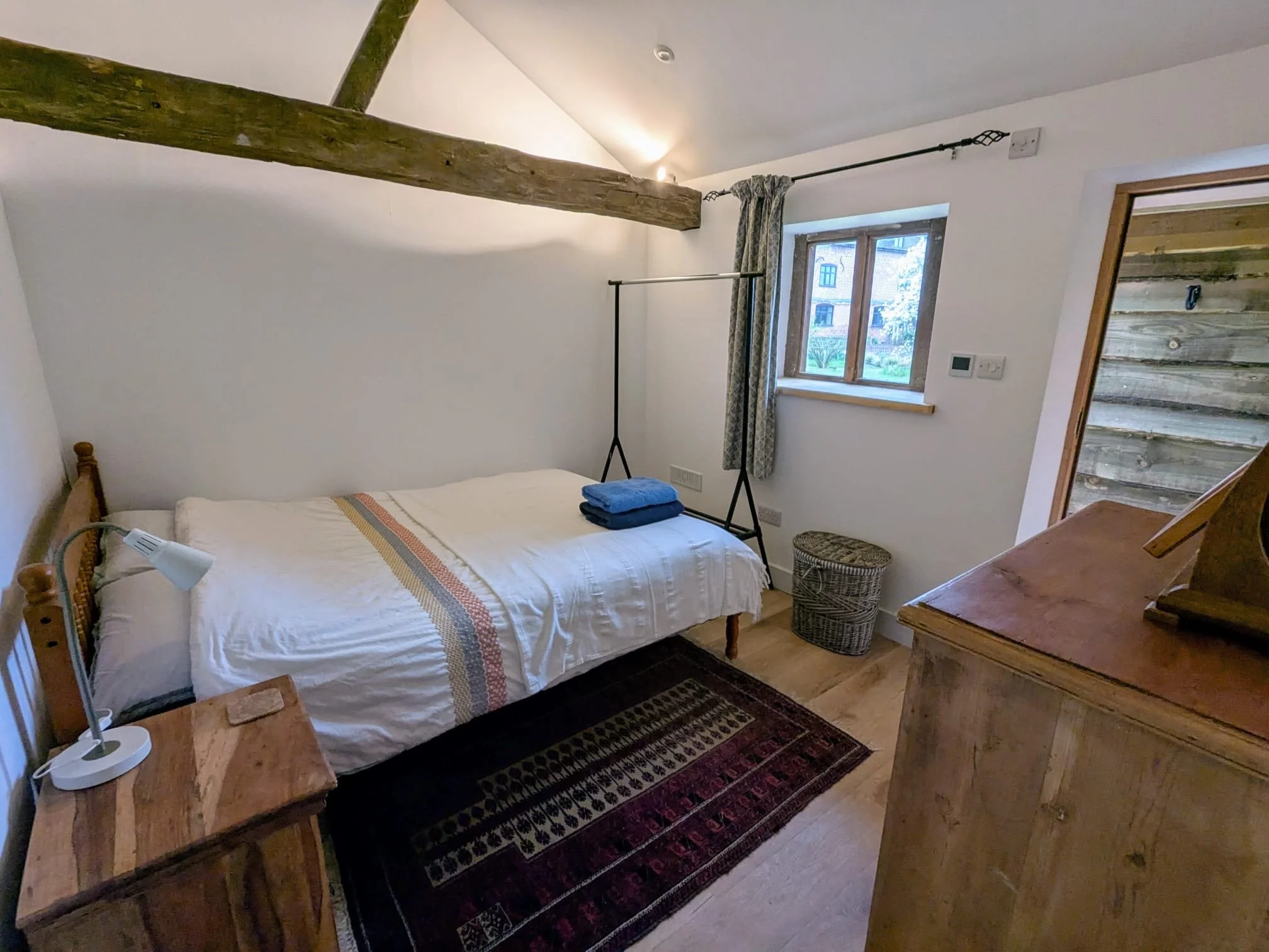 The retreat annexe at Ravenshill is a self-contained, secluded and private L-shaped apartment, created from outbuildings that frame the front garden with its shapely hazel, apple, quince and magnolia trees. You can access the annexe from there, or from a private entrance to the rear. Inside, the fully equipped kitchen gives on to a generously proportioned shower room, double bedroom, and a living room/study area.